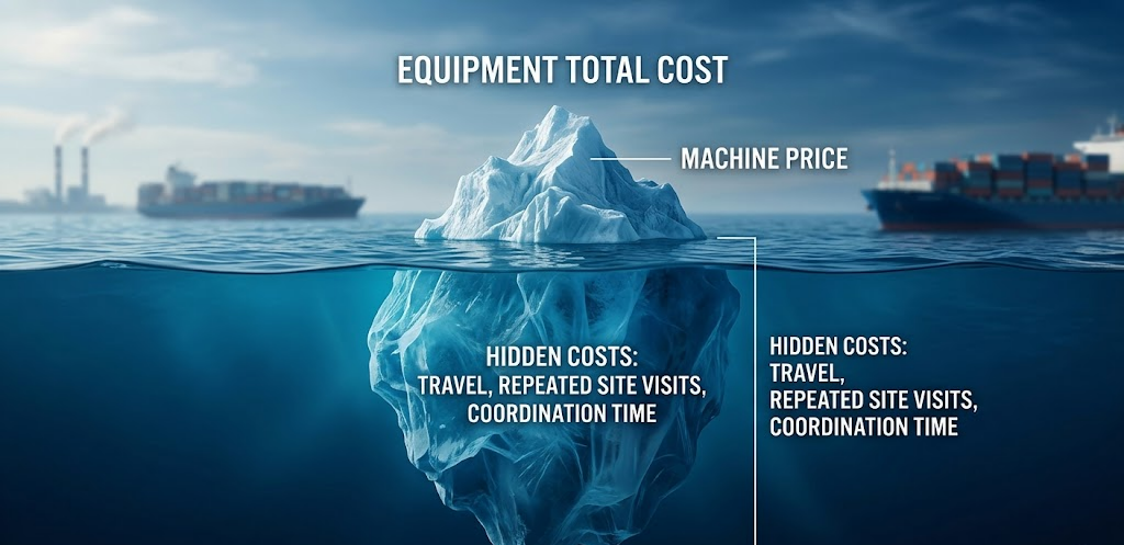 That’s exactly what happens in traditional sourcing. The machine price looks great. But then come the hidden costs: $2,000 for a last-minute flight to inspect a part; a week of your engineer’s time wasted in a hotel room waiting for a factory visit; and the endless emails to coordinate three different companies. You didn’t see these on the quote, but they are very real, and they come straight out of your profit.